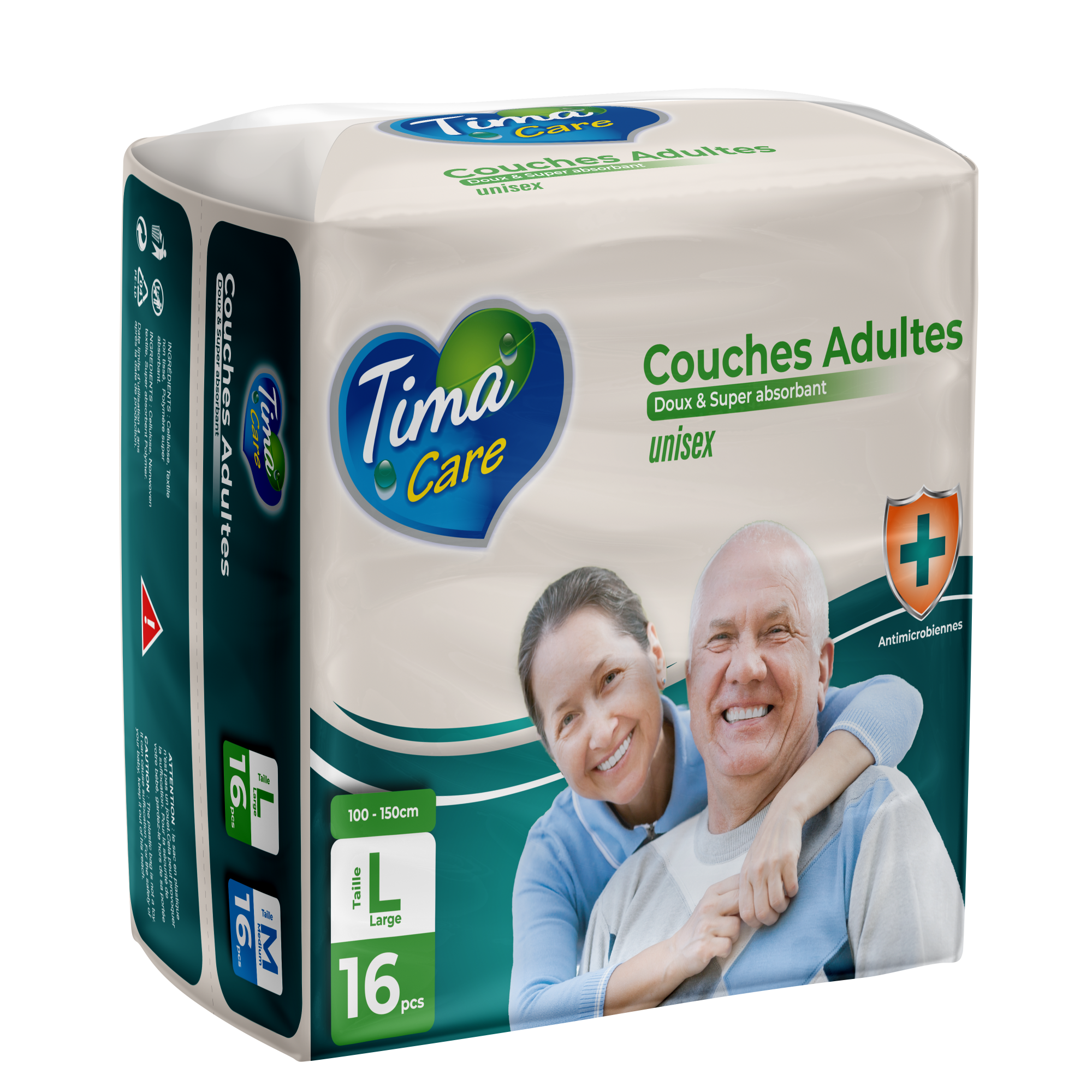 TIMA JUMBO PACK LARGE Gamme de poids: 7 à 18 kg Quantité /Paquet: 56 couches Emballage: 3 paquets par balle